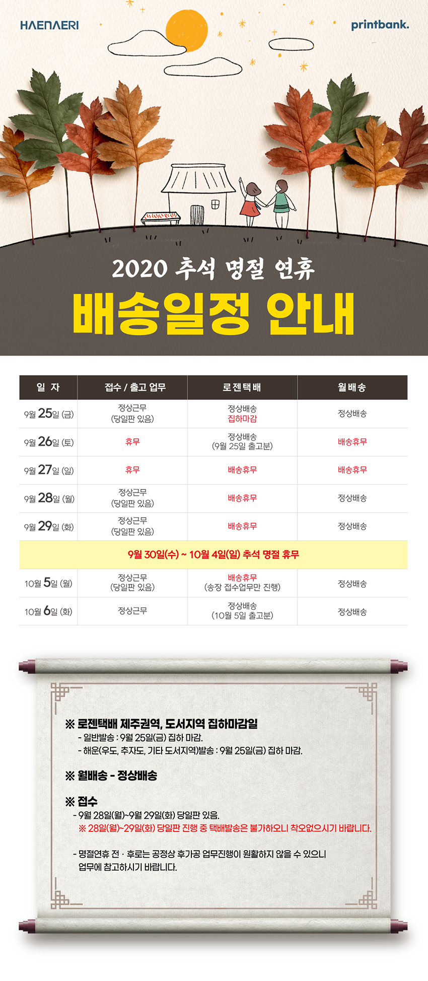 | 542 | [°øÁö] 2020 Ãß¼® ¸íÀý ¿¬ÈÞ ¹è¼ÛÀÏÁ¤ ¾È³» | 2020-09-21 |
